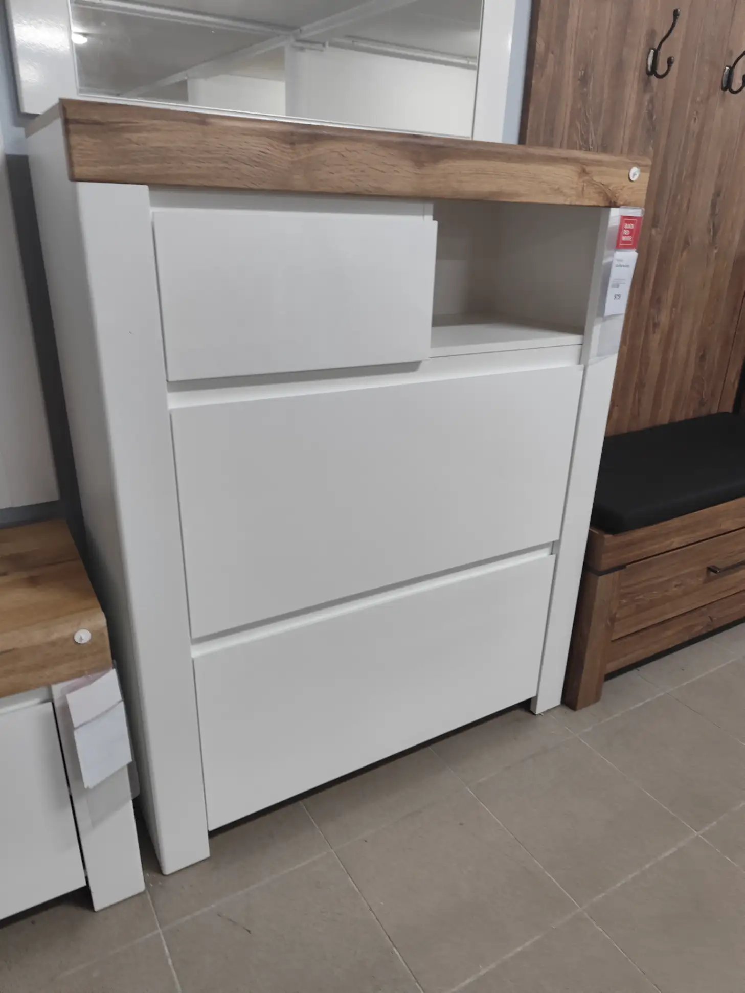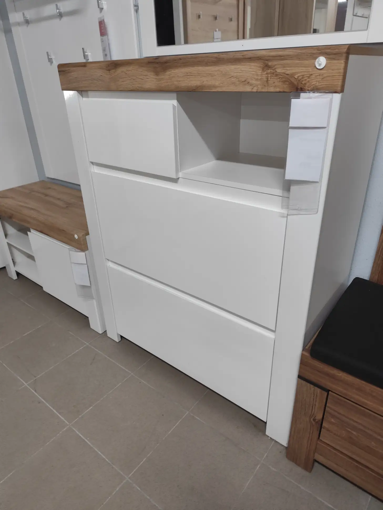 • Szafki na Buty:2 podwójne, uchylane szafki na buty, które pomogą uporządkować obuwie.