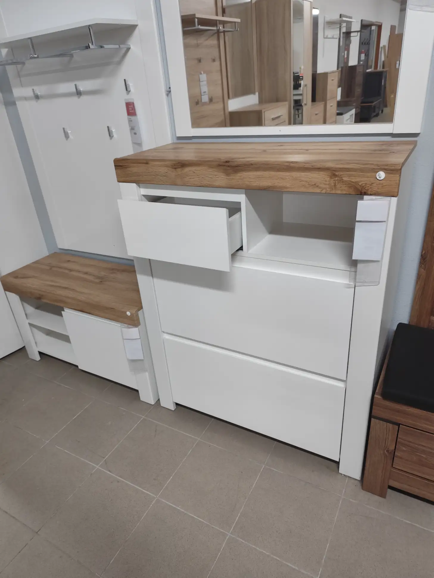• Szuflada: Kompaktowa szuflada idealna na klucze czy akcesoria. Jest ona osadzona na prowadnicach z cichym domykiem, co zapewnia komfortowe i bezszelestne użytkowanie.