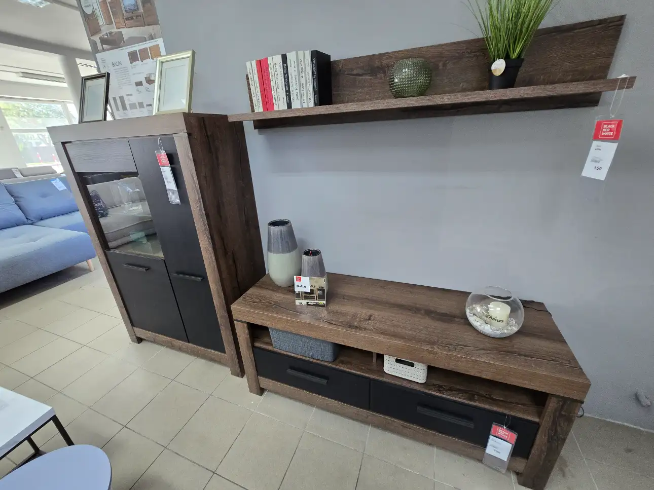 - Kolorystyka: Mebel wyróżnia się wyjątkową kolorystyką i strukturą. Korpus w wybarwieniu dąb monastery oddaje piękno naturalnego usłojenia drewna. Fronty są w dwóch opcjach: dąb monastery (spójnie) lub dąb czarny (kontrastowo).