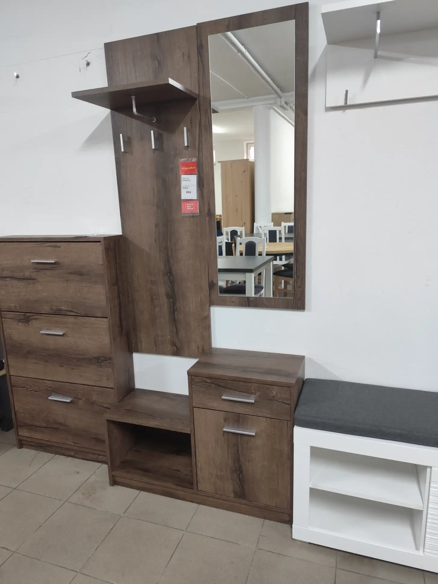 • Odporność: Mebel pokryty jest laminatem, który podnosi odporność na zarysowania oraz różnicę temperatur, co jest kluczowe w często eksploatowanym przedpokoju.