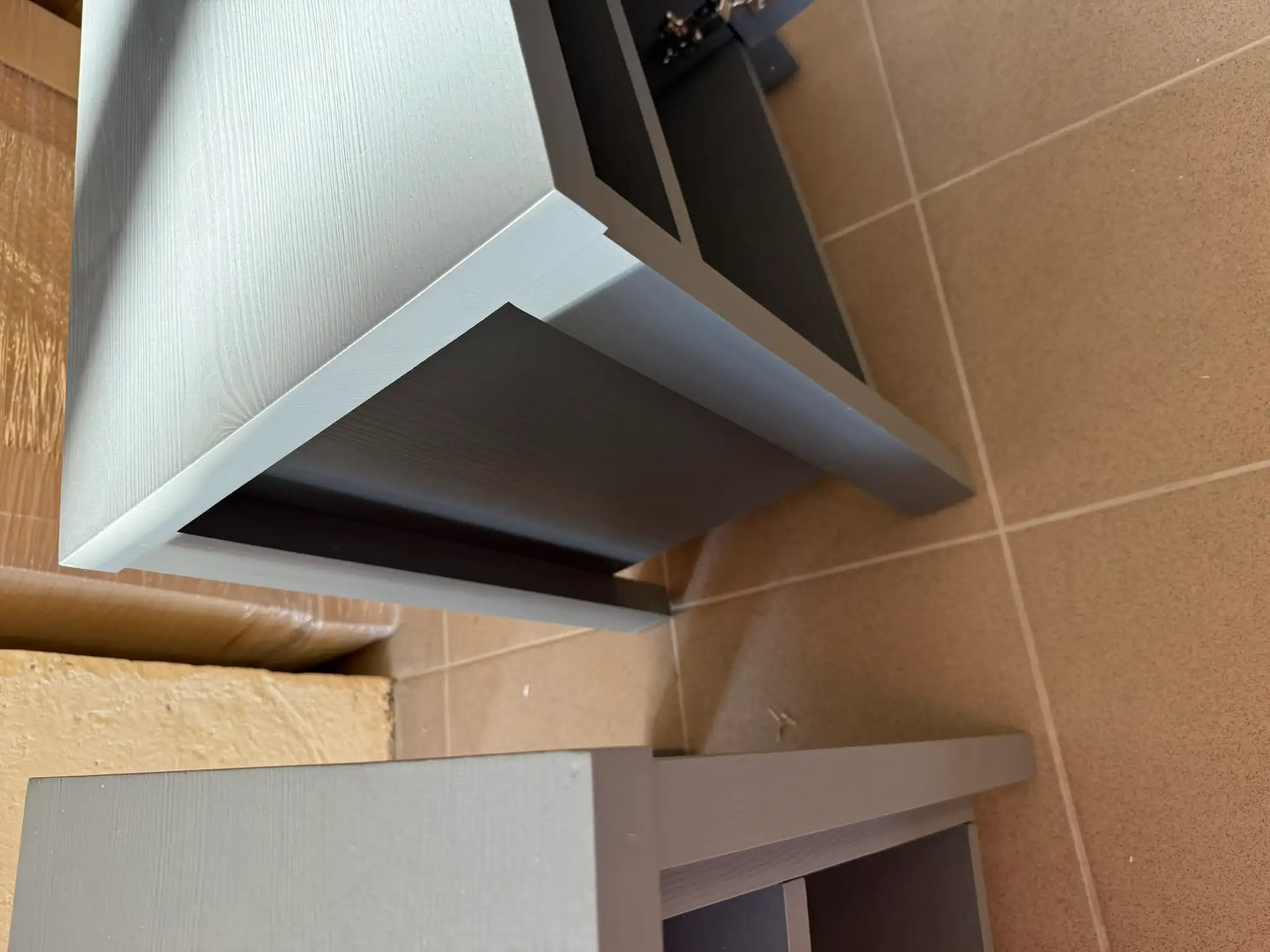 Stan powystawowy – bardzo dobry, jedna z szafek posiada niewielki odprysk na nóżce i drzwiczkach. Poza tym meble w bardzo dobrym stanie, bez innych uszkodzeń.