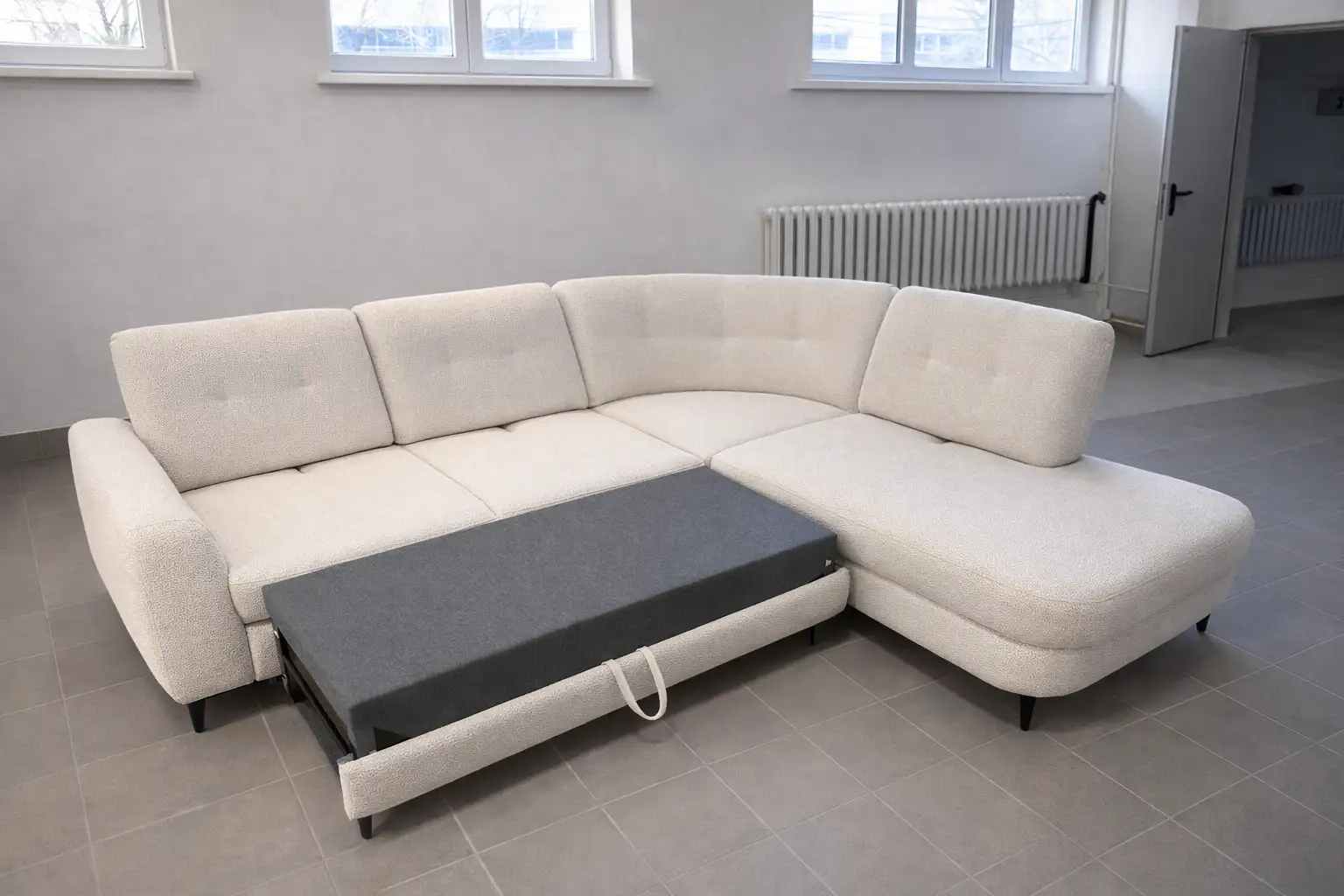 To wygodny, solidnie wykonany narożnik z funkcją spania i pojemnikiem na pościel, zaprojektowany z myślą o codziennym komforcie użytkowania.