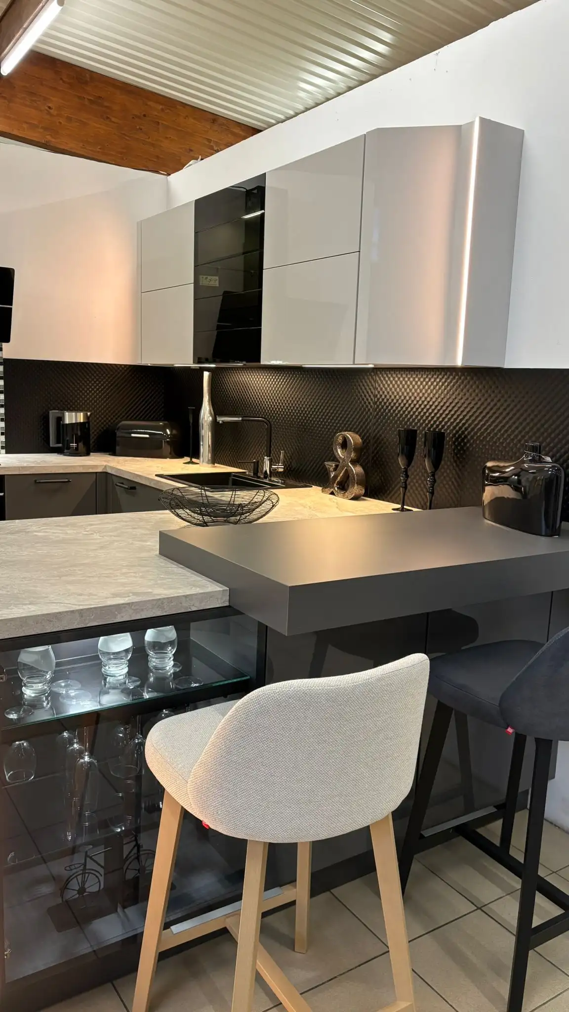 - Dwukolorowy Design: Kuchnia łączy w sobie elegancką biel z nowoczesną szarością, co nadaje wnętrzu lekkości i modnego stylu.