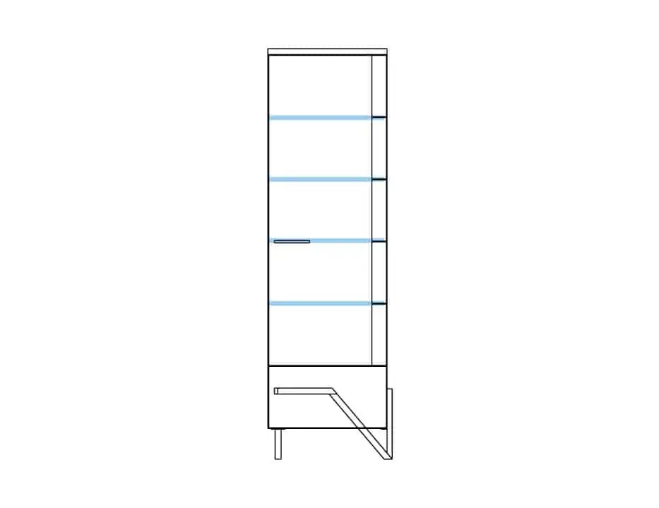 Witryna z kolekcji Pik to połączenie nowoczesnego wzornictwa z solidnym wykonaniem. Elementy litego drewna oraz naturalnej okleiny nadają meblowi elegancki charakter, a oświetlenie LED efektownie podkreśla ekspozycję dekoracji, szkła lub zastawy.