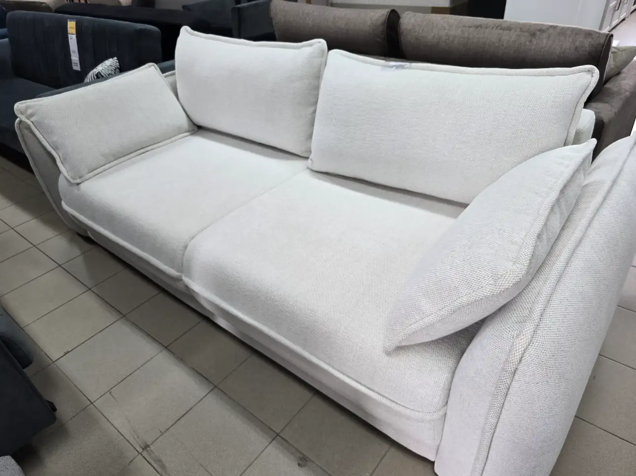- Sylwetka: Sofę wyróżnia obła linia bryły i miękka sylwetka. Jej szerokie boki i podłokietniki (wysokość 66 cm) dodają meblowi masywności i komfortu.