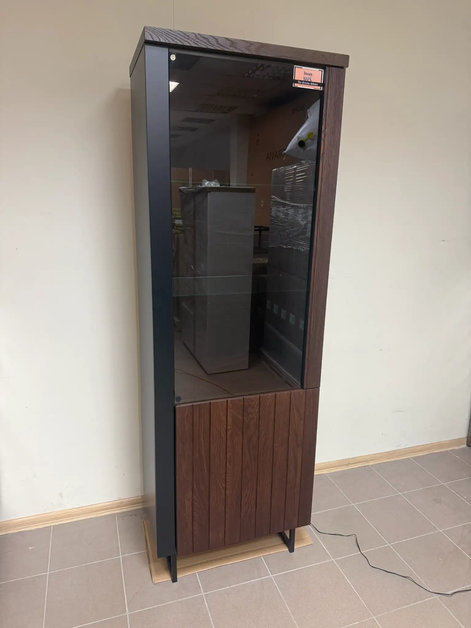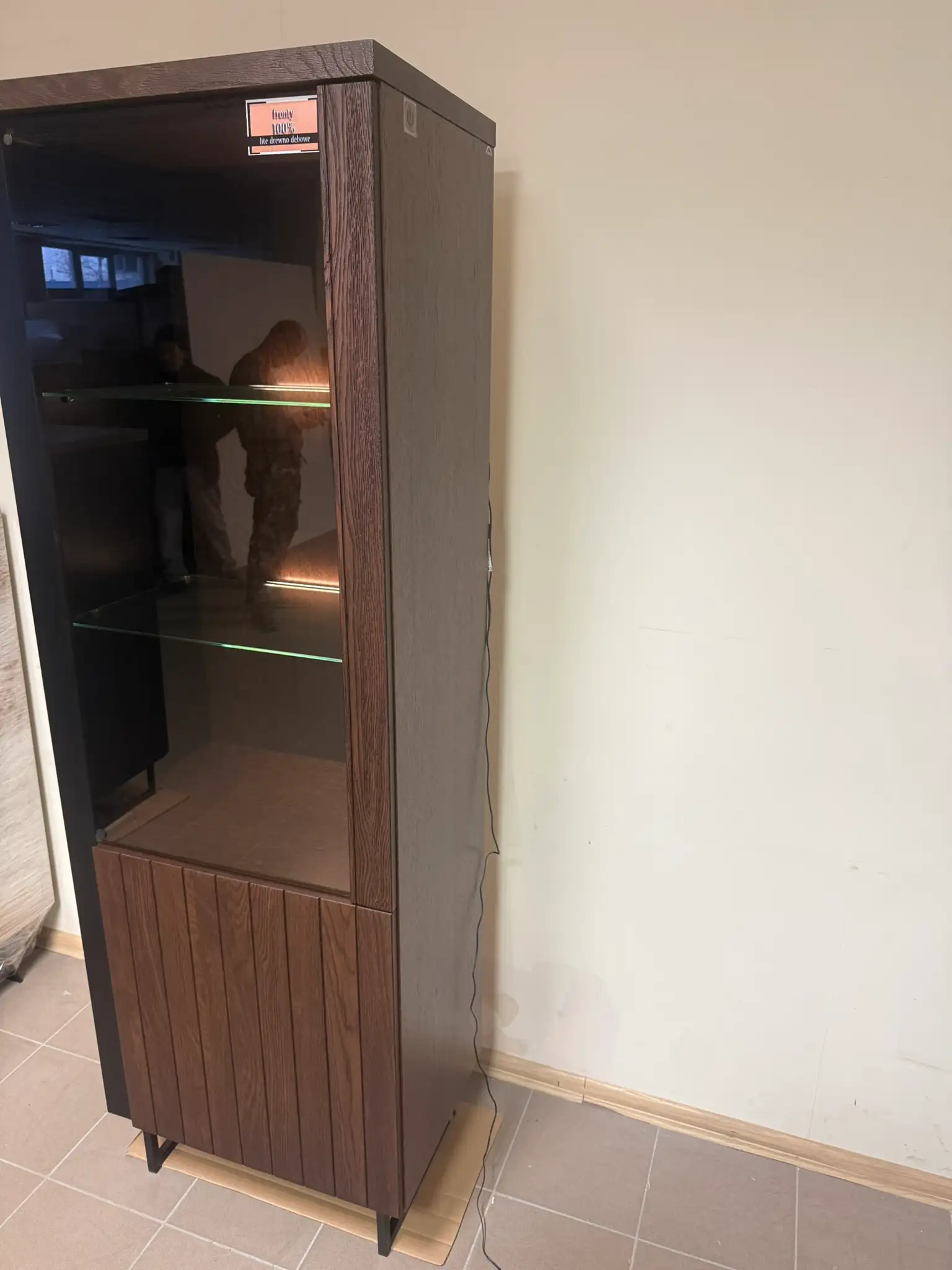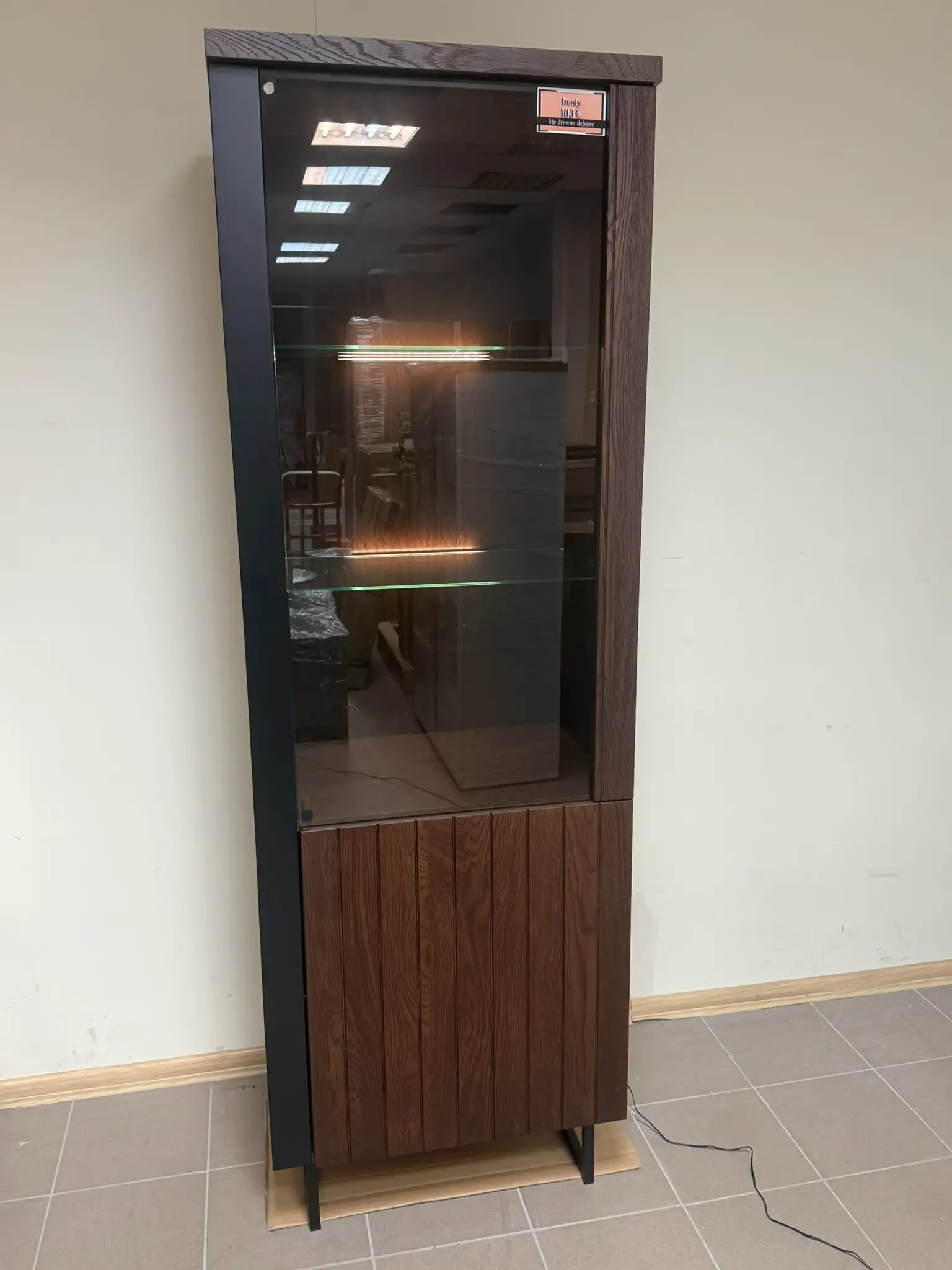 Witryna pochodzi z ekspozycji sklepowej i może posiadać drobne ślady ekspozycji, widoczne na zdjęciach. Nie wpływają one na funkcjonalność ani stabilność mebla. Cena została ustalona z uwzględnieniem stanu powystawowego.